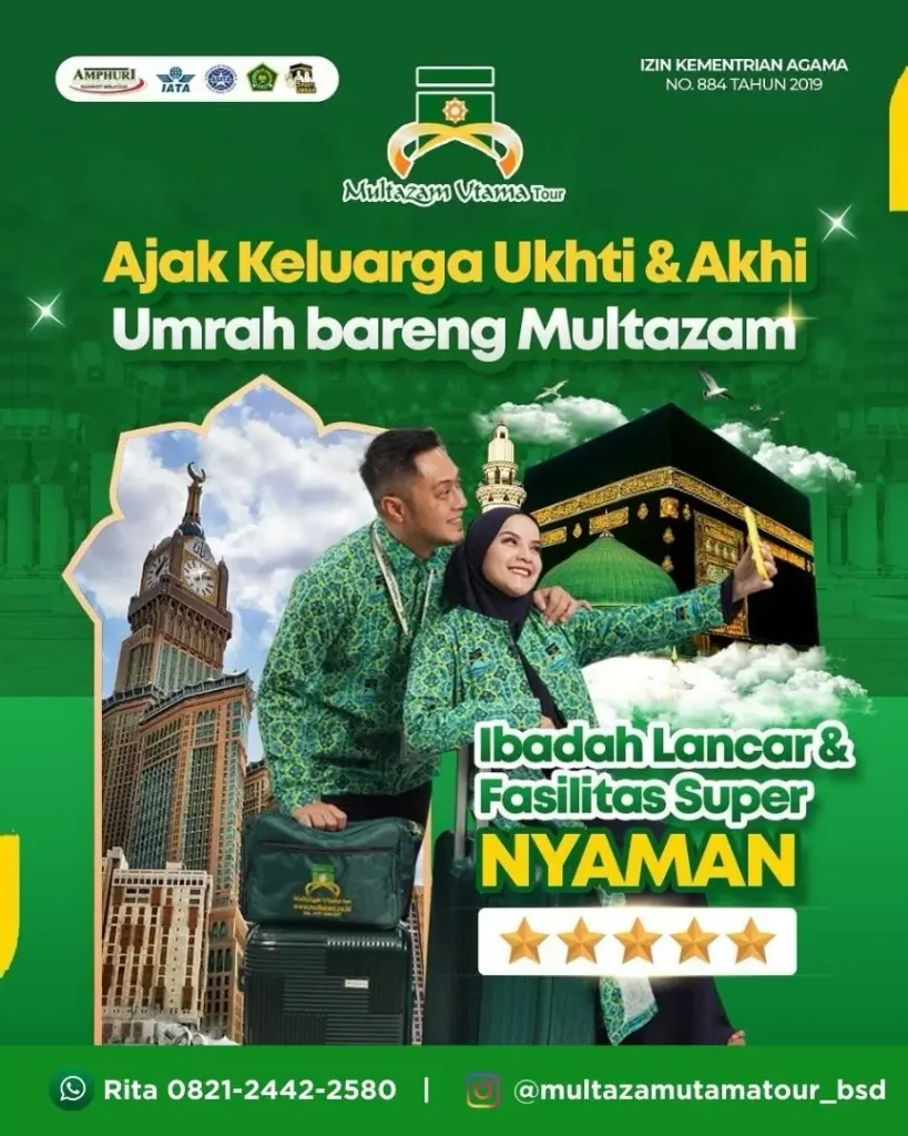 Jadikan Multazam sebagai sahabat terpercaya Anda. Wujudkan perjalanan umroh yang aman dan penuh makna, didampingi tim profesional untuk pengalaman ibadah yang tak terlupakan.